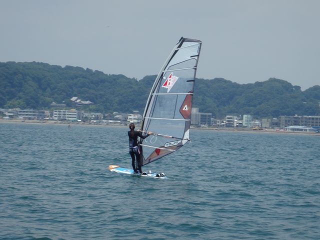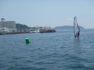 午後はもう少し風が入って来たので、片田さんと真ん中の航路ブイまでレース!