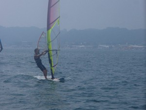 新保さん、最大セイルでプレーニング狙い!吹け!!