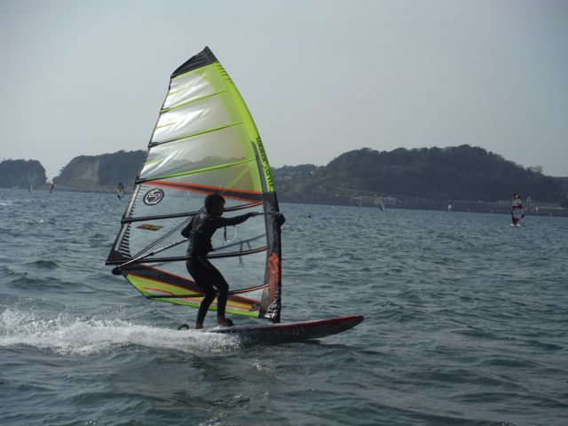 春の南風でプレーニング school 2015.03.22 今日はダガー無しボードに挑戦したミサワさん 回転性が良いので、ジャイブもラクチンですね。 久しぶりの山田さん 良い風でしたね。 プレーニング、バッチリ。 カイトは7.8 OTAも7.8 ひさしぶりのキヨトも7.8 新保さんも良い風を掴みました。 よりハーネスが使えるようなフォームも改造中です。 今日はジャイブマークを打って、皆で揃えてセイリング。 片田さんも快走! 午後の風でミサワさん奮闘中 この風で6.0 ハーネスかけてセイリングできるようになりました! この夏が楽しみですね! ニューボードの第新さん! カイトジャイブ キヨト いい感じでボードが浮いていますね! ダガー無しボードで走れるとまた違う感覚ですね。