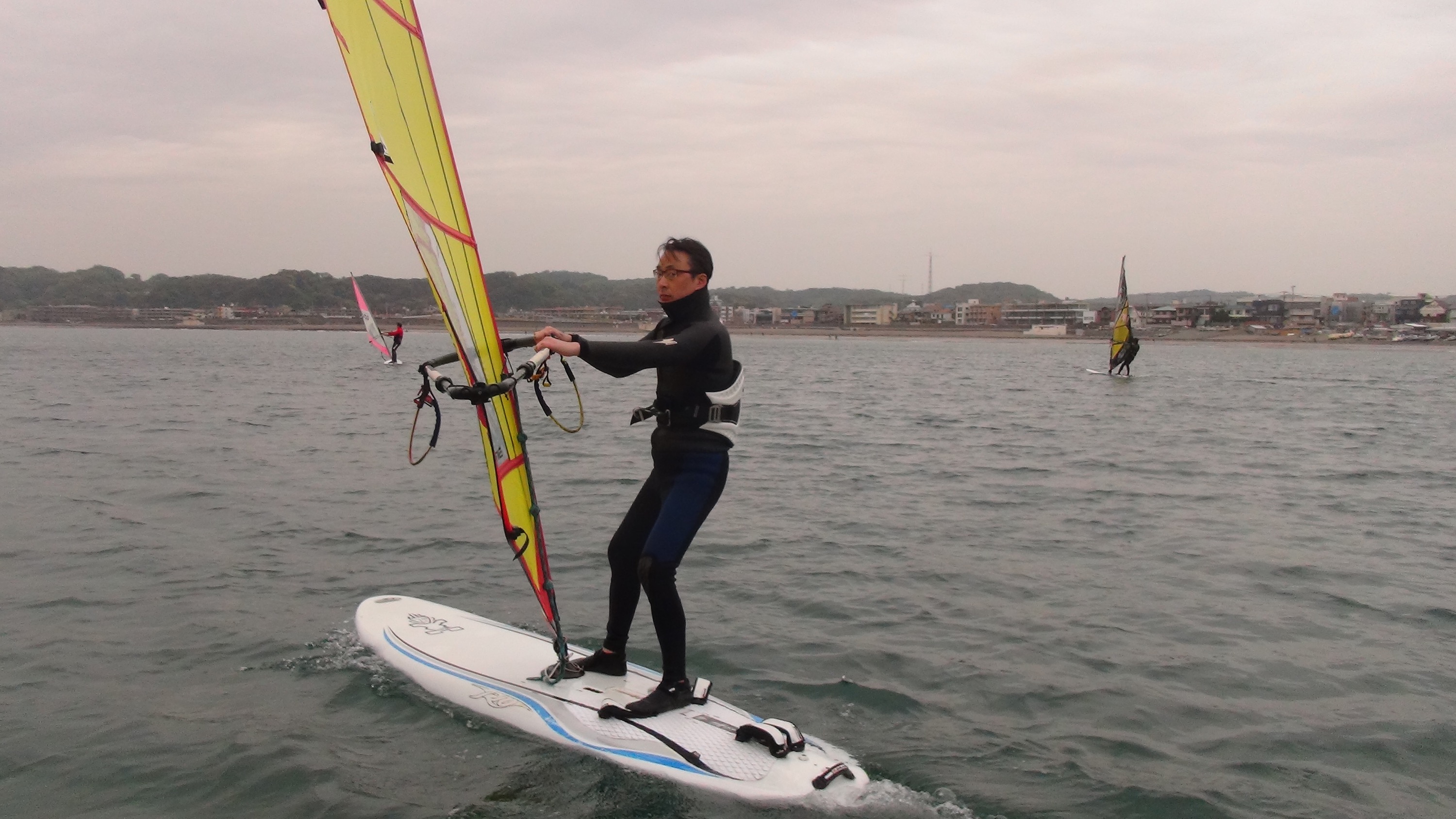 ブローが入るとしっかりハーネスかけてセーリング。