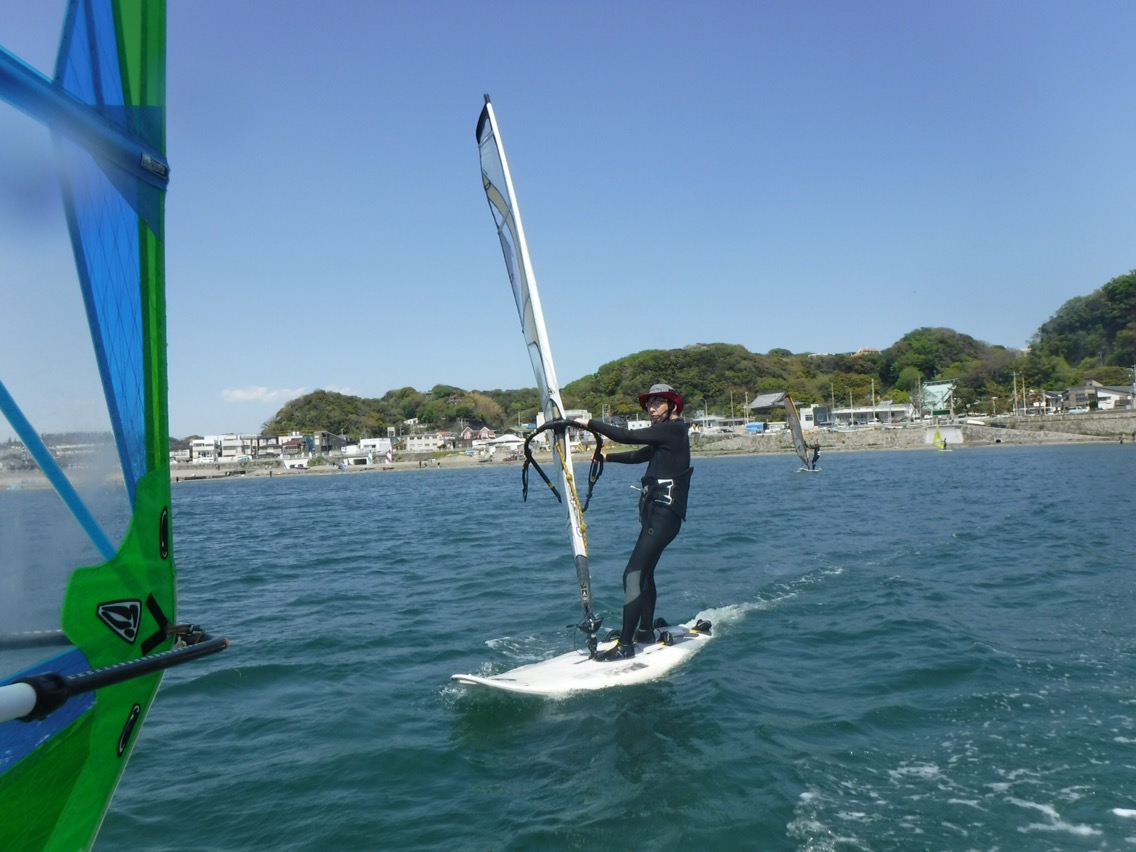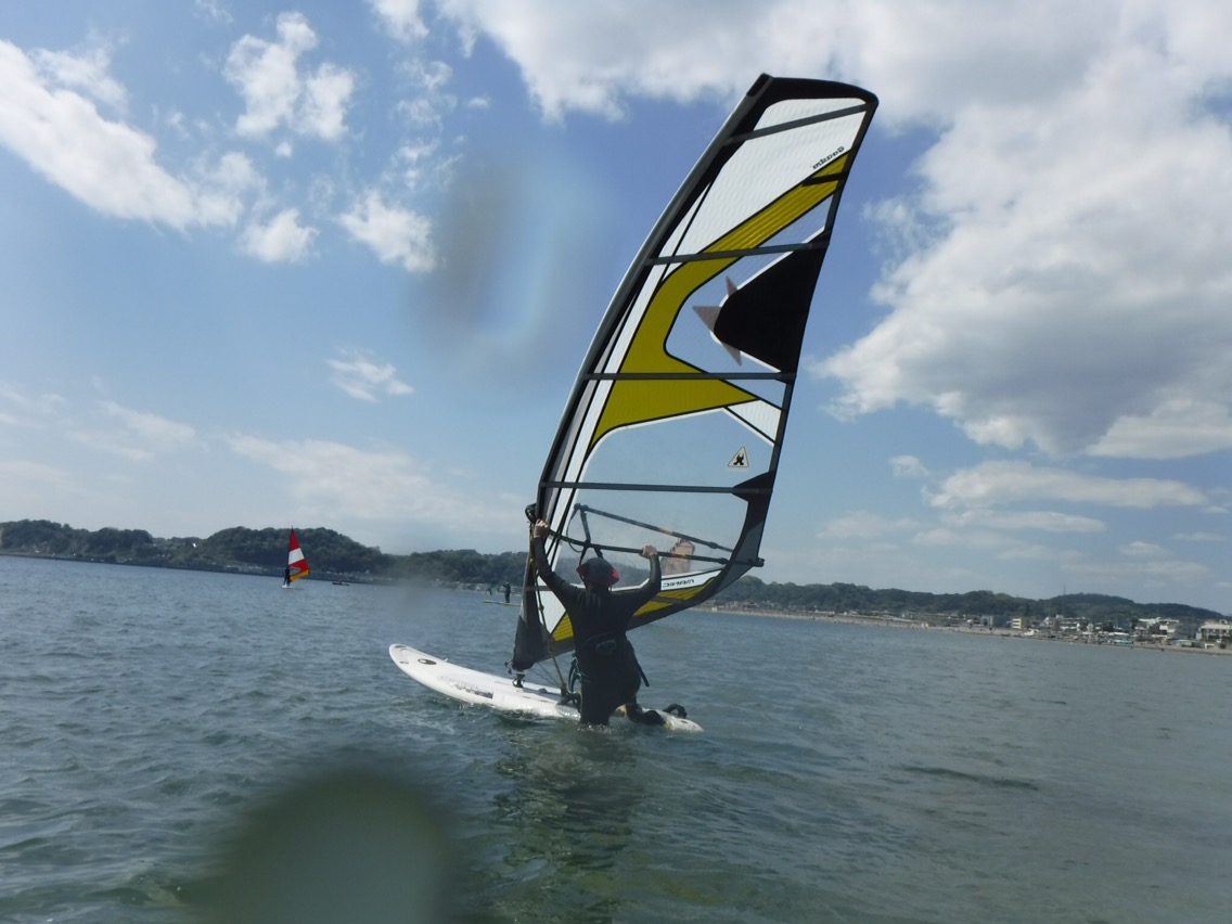 ウィンド初挑戦の2人も午前中フラット海面で基礎をしっかり覚え、午後は風を使ってなんども往復していましたね〜