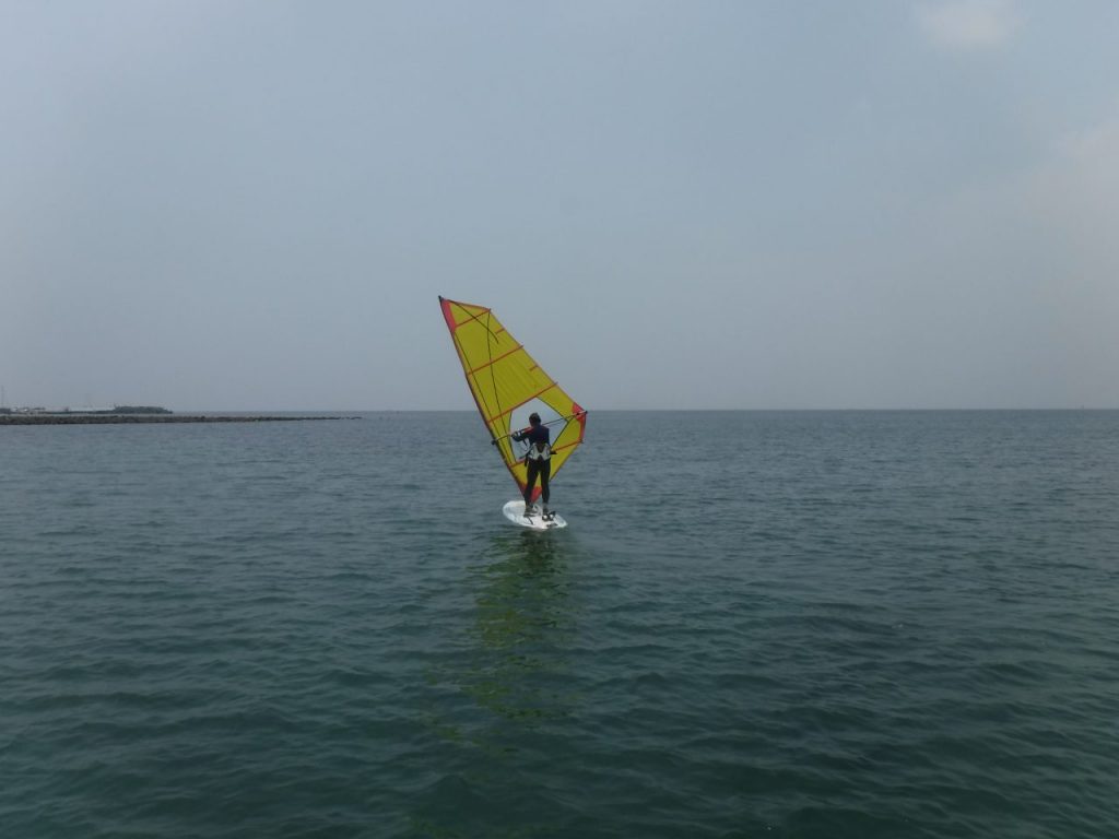 本日はハーネスの練習をしたかったですが、セイルに寄りかかる感じ、セイルパワーのトリムコントロールがなかなか難しいですね。