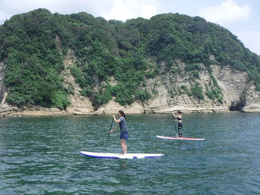 Good SUP Crusin school 2019.07.24 今朝は無風でSUPトレーニング! ギリギリまで小さいボードに挑戦! 体幹トレーニング中〜 2回目のSUPですが、小さいボードでもスイスイ。