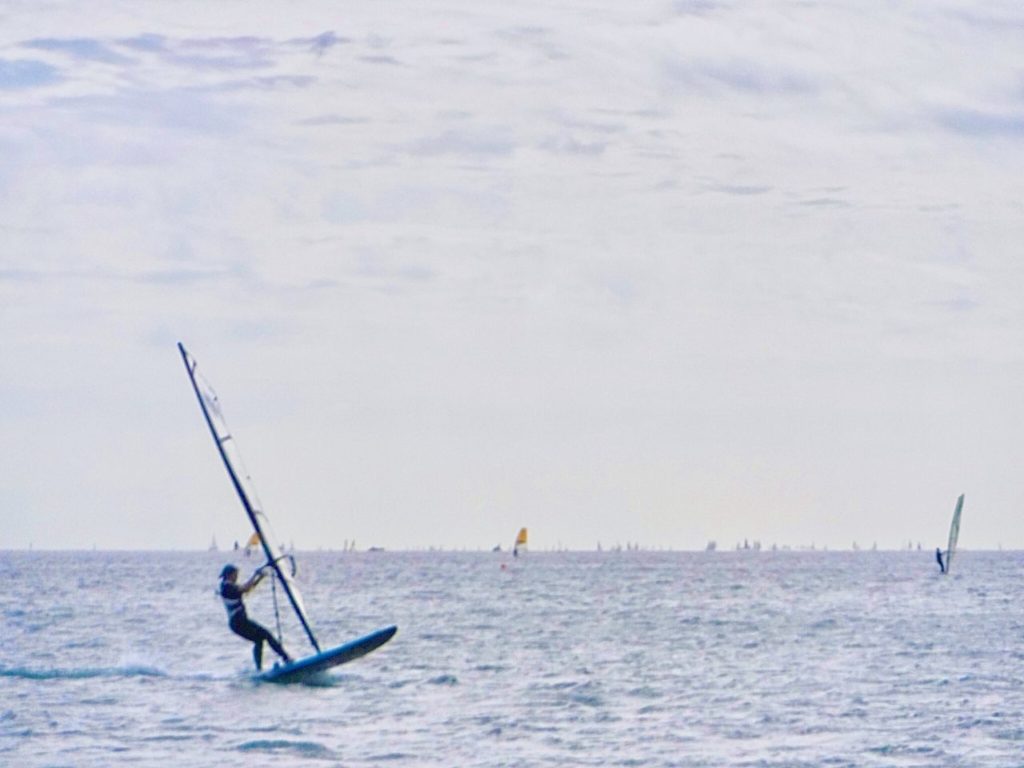 朝はダメかと思いきや、スクールの時間にばっちり上がってきました、オフショアの風!