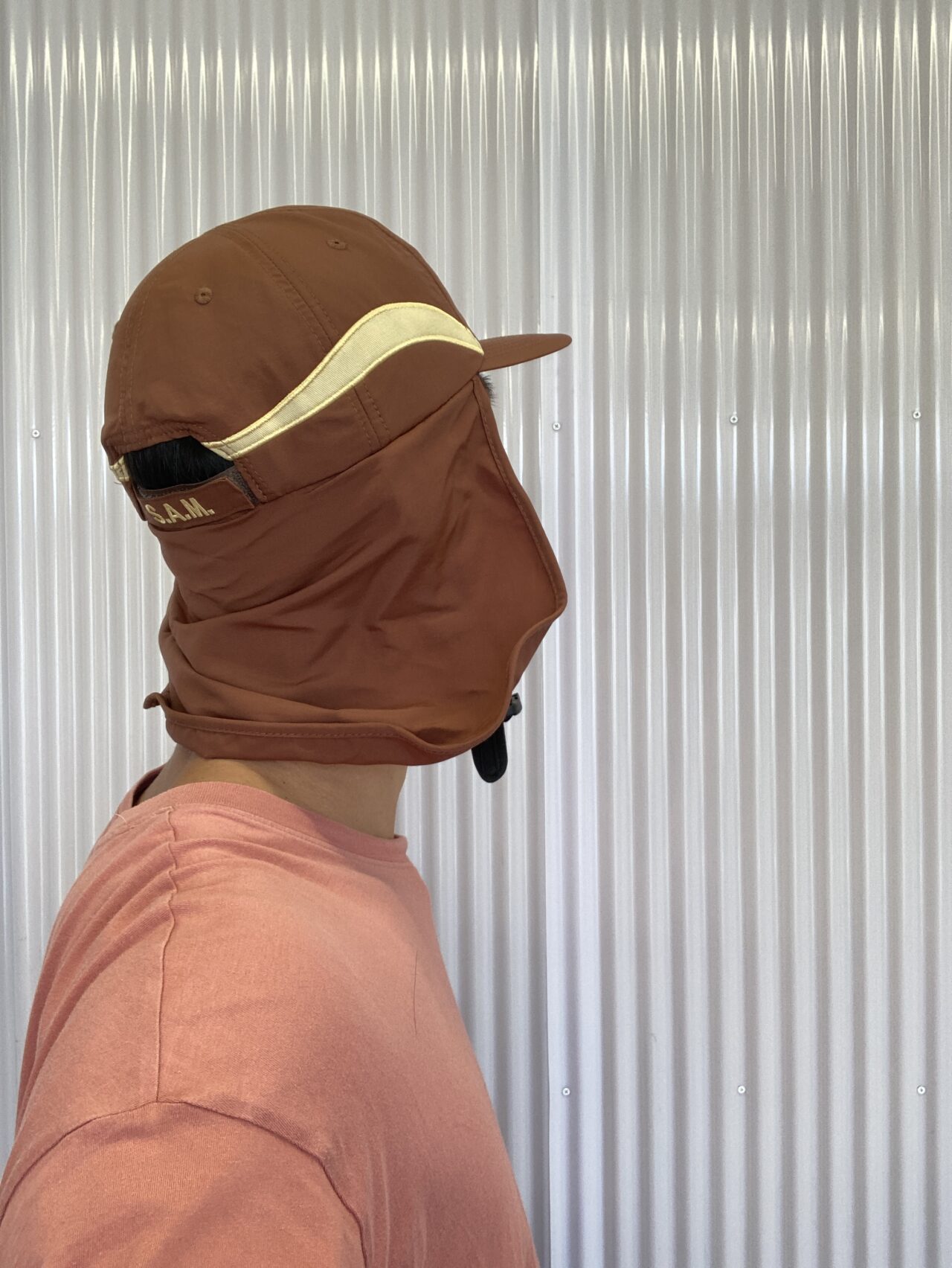 顎ベルトと首のフラップを内側に折り込めば、キャップのように着用できます